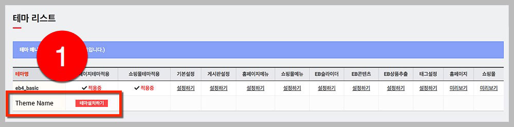 - 테마 설치 후 보여지는 화면은 데모 사이트의 가짜 데이터들로 메뉴, 게시판, EB슬라이더/콘텐츠/최신글등을 사이트 용도에 맞게 설정하기 바랍니다.
