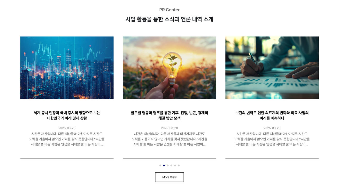 서버 환경에 따라 보여지는 가짜 데이터들이 사라지는 경우 편집모드 탭과 테마설정 및 가이드를 참고해 새로 설정하기 바랍니다. - 해당 테마는 사이드 레이아웃을 사용하지 않는 디자인이며 비반응형을 지원하지 않습니다.