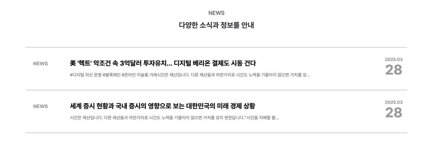 - · 최신글 게시물수:10 / 이미지 출력 여부:사용 / 이미지 사이즈:600(폭) X 0(높이) / 게시물 내용 출력 여부:사용 / 게시물 내용 길이:90 / 작성일 출력여부:사용 / 작성일 출력형식:년월일 방식 / 작성일 표기방식:Y.m.d